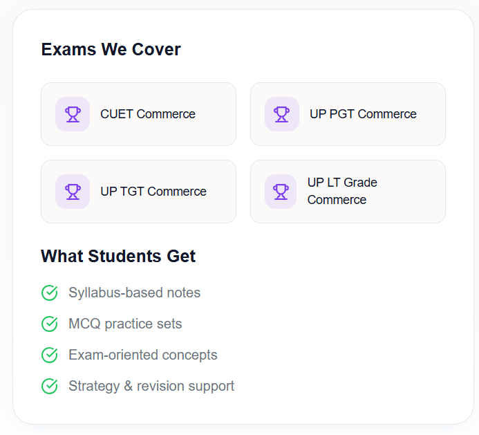 Read more A complete learning platform for Class 11 & 12 Commerce students and Commerce competitive exam aspirants.