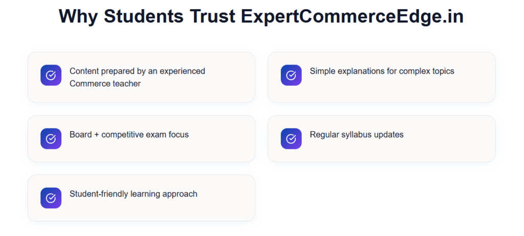 “Clear concepts, structured notes and exam-oriented guidance — ExpertCommerceEdge.in truly supports Commerce students at every level.”